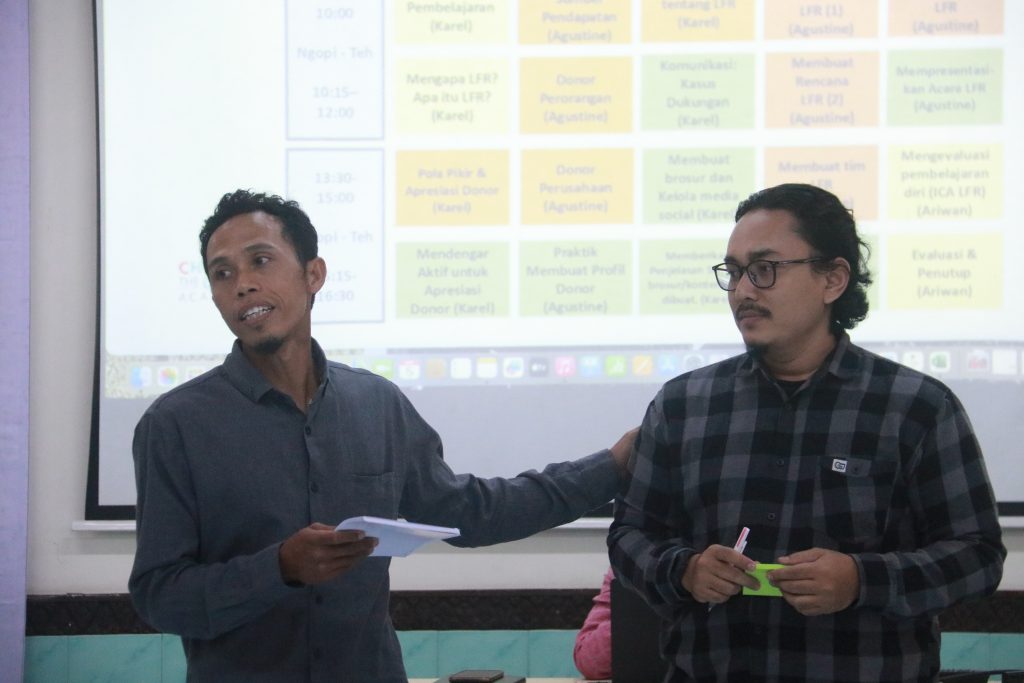 “Selain itu, dengan melakukan aktivitas Local Fundraising kita juga dapat memperkuat hubungan organisasi dengan masyarakat lokal, khususnya dengan orang-orang yang peduli dengan isu yang kita bangun,” jelas Karel Tuhehay, fasilitator pelatihan. Hal ini mengungkapkan pentingnya LFR tak hanya perihal kuatnya potensi donor lokal, tetapi juga hubungan sosial budaya antara organisasi dengan masyarakat sekitar yang harus tetap dikembangkan.